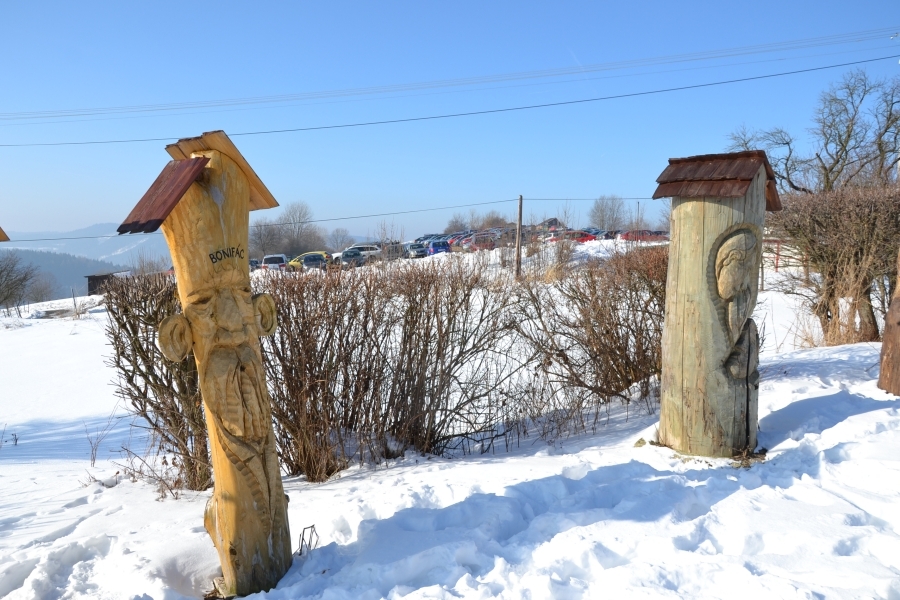 No a když jsme dojeli do obce, stál tam „regulovčik“ v oranžové vestě, který nás nasměroval na zamrzlou louku bez sněhu, kde stálo takové množství aut, že jsme uvítali radu dobrosrdečných valachů, aby jsme jeli do téhle uličky až na konec, protože tam právě jedno auto odjelo. No a tak se stalo, že jsme se nemuseli vracet. No fakt tam bylo tolik lidí, že jsme pak měli dojem, že jdeme po „Václaváku“. Jak začal ten regulovčik řidičům vysvětlovat, že je plno a musí jet zpět, tak ho nikdo neposlechl a tak regulovčik raději utekl s poznámkou „ať si to starosta vyřeší, mě to už nebaví, dyť oni mě neposlouchají.