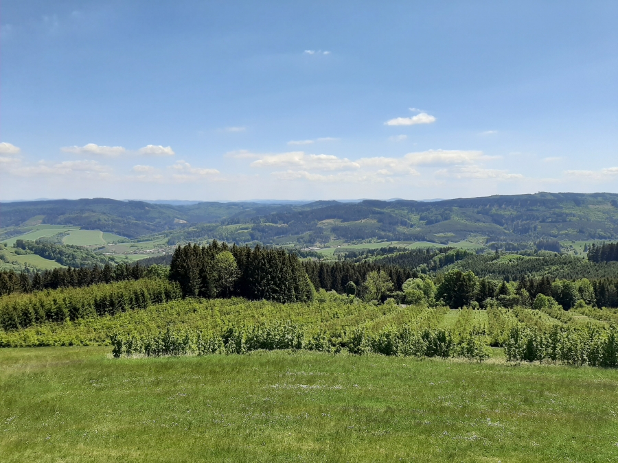 Za Liptálem jsme pak zastavili na křižovatce Sirákov a auto nechali na parkovišti pod hotelem Sirákov. Potom už jen cesta po svých s mírným stoupáním až na rozhlednu Vartovna. Kolem zelené lesy a krásné louky plné květů.