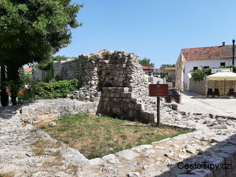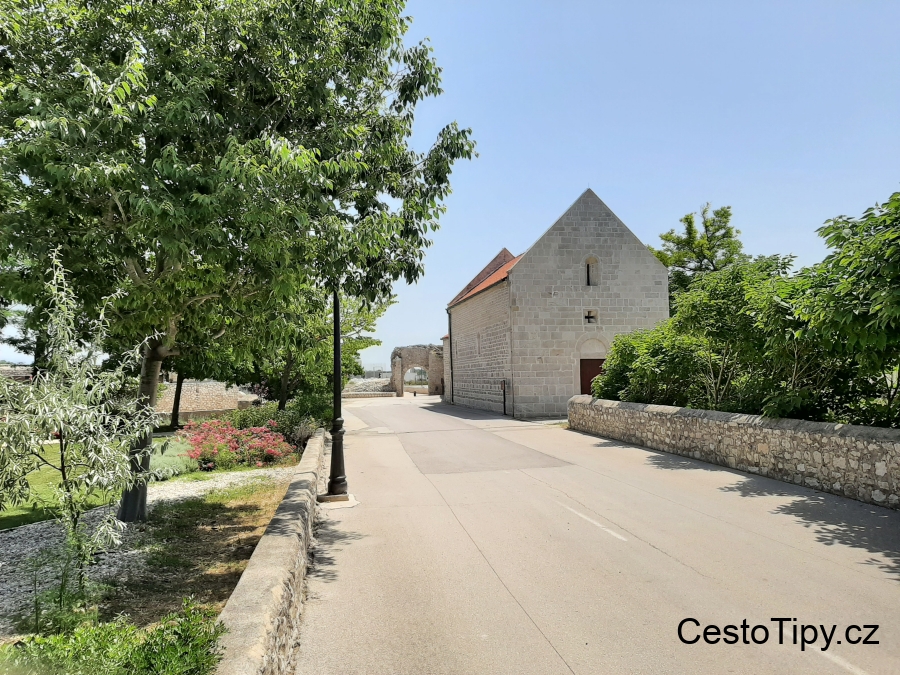 No a my tedy vystoupili a šli z kopce k dalšímu kruhovému objezdu a už z něj jsme viděli náš cíl. Historické centrum městečka Nin, které je vybudováno jako pevnost na ostrově. Dá se do něj dostat jen dvěma kamennými mosty.