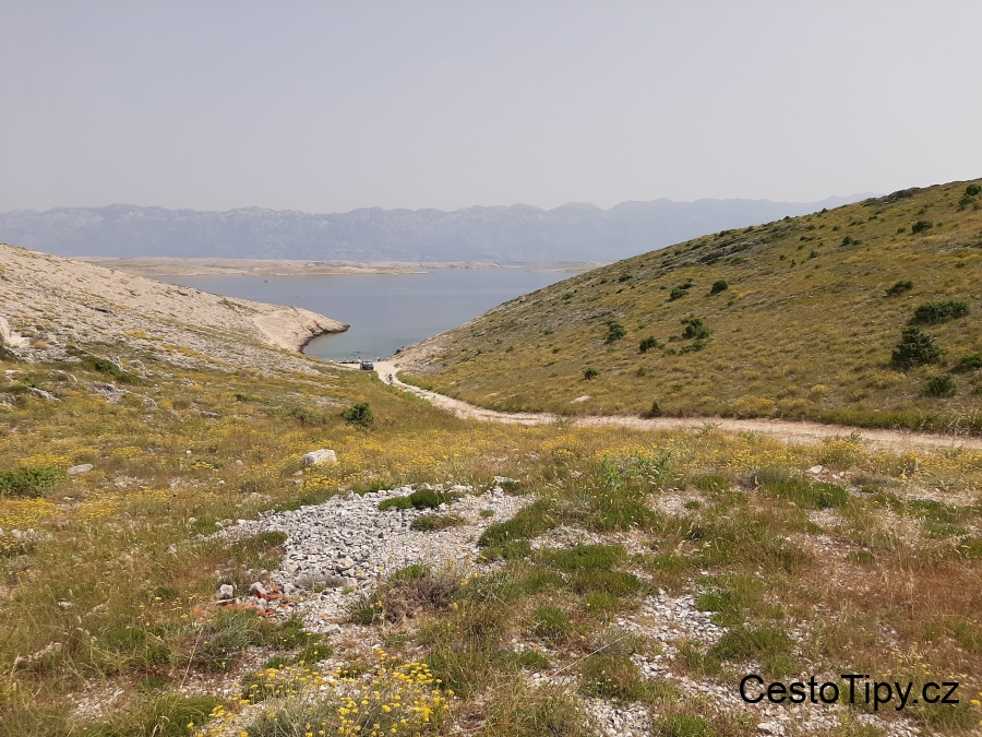 Skutečně tohle je nádherná písčitá pláž a podle toho tady bylo i hodně aut. Protože po svých sem žádný místní nechodí. Cesta z Vrsi přes borovicový les nemá stínu. Je to jen kamenitá lesní cesta a když kolem nás něco projelo zvednul se prach. Nebylo žádného značení jen intuice, že někde po hřebeni a potom z kopce musí tato cesta skončit na asfaltové silnici a mezi domy při pláži Punta velebit, kde jsme si to už jeden den prošli a probádali.