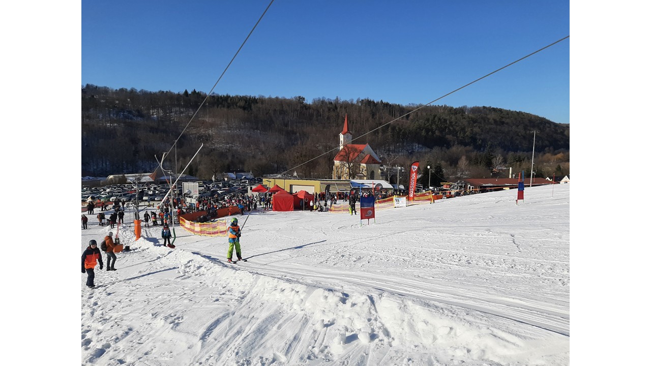 Ale byla tu i jedna sobota, kdy jsem zvládl za krásného počasí stát opřený o stožár šlepru a fotil jsem závodícího a šťastného vnuka na svahu v Hlubočkách, obec jen kousek od Olomouce.