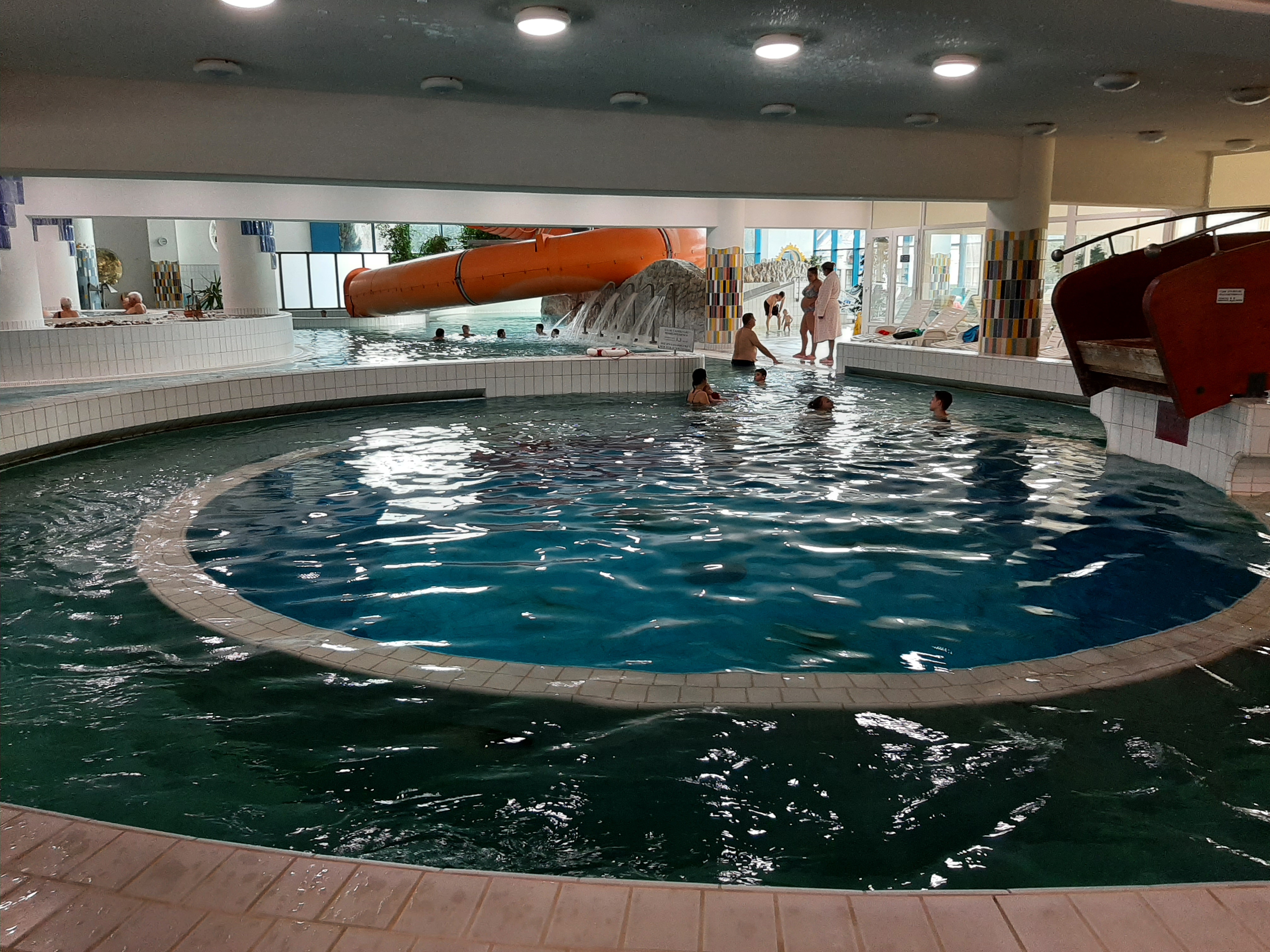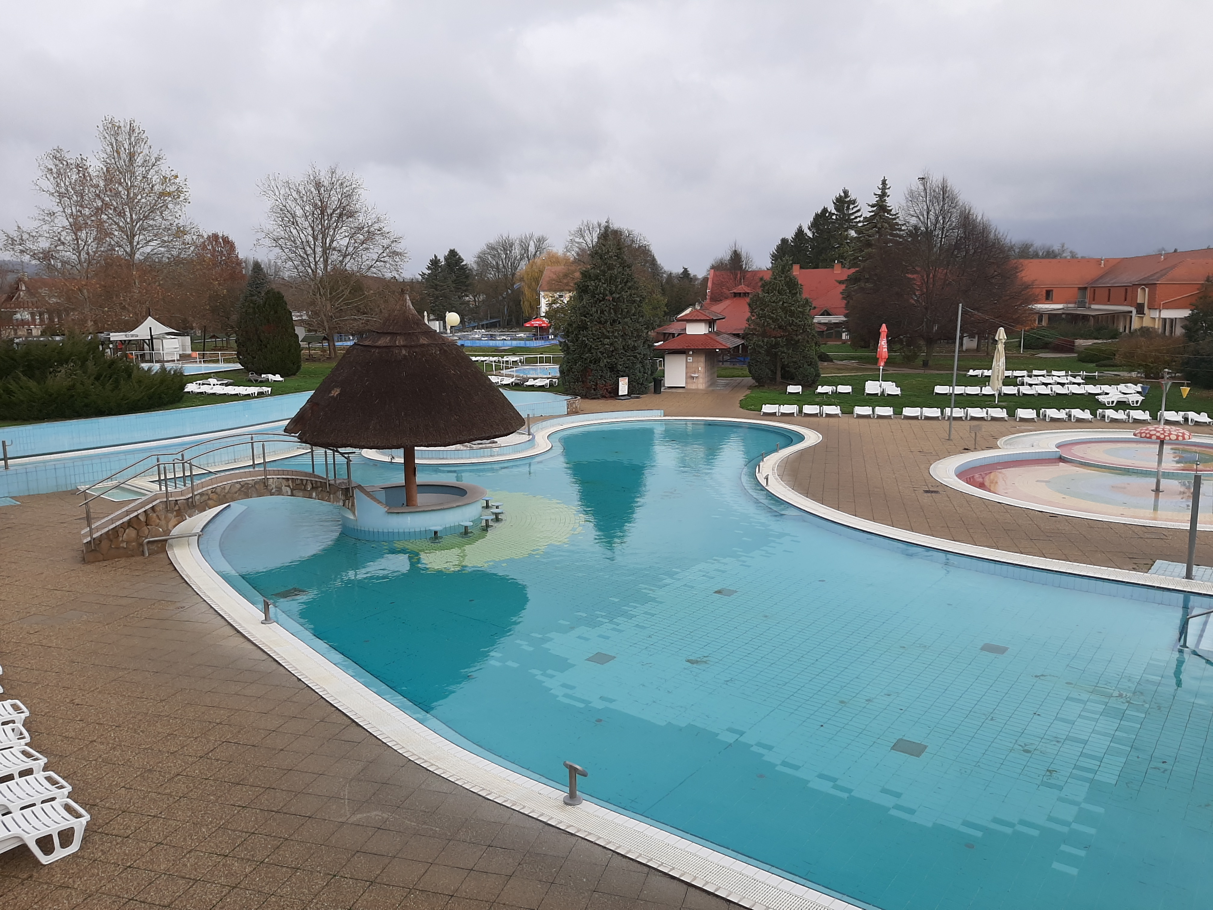 Toto molo už známe z různých ročních období a je tady vždy něco k pozorování a srovnávání. Je už v tomto podzimním čase i volný vstup na klasickou plovánu. I tentokrát jsme si to po 12:00 hodině vychutnali, protože je tu stánek s čerstvě pečenými langoši. Takovou malou typickou pochoutkou v Maďarsku. Dojedli jsme a už jsme jen mohli odkazovat první z výletníků na stánek s langoši. V 15:00 jsme už zase diskutovali v teplých vodách lázní Kehydakustany.